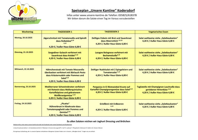 Speiseplan KW 43 2025 Unsere Kantine Kod